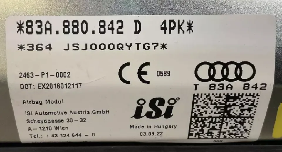 膝部安全气囊 奥迪Q3 副驾驶侧 2019-2023款