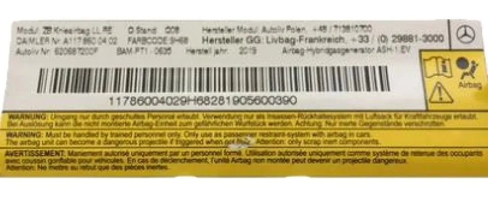 Коленная подушка безопасности (правая сторона, бок водителя, приборная панель) - Mercedes-Benz CLA-Class (C117)